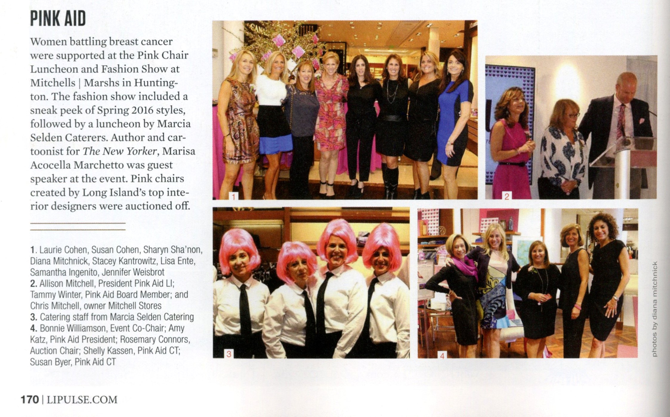 Firm Partner Michele Pincus, an active member of the Pink Aid Committee, both helped coordinate and participated in this year’s Second Annual Pink Chair Luncheon and Fashion Show. The event, which last year raised more than $225,000 from its 300 attendees in support of several local community grants, was held October 15, at Mitchells|Marshs in Huntington.