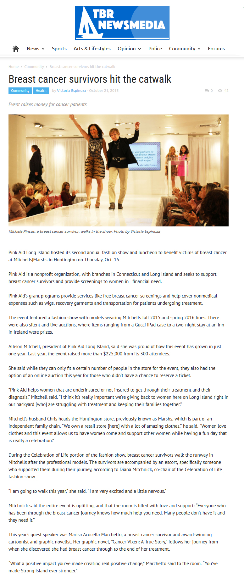 Originally founded in Westport, Connecticut in 2010, Pink Aid funds breast cancer support services that provide transportation to treatment, child care and food cards, among other things, for local women in need while in treatment. This grant-based organization is the brainchild of Amy Katz, Amy Gross, Renee Mandis and Andrew Mitchell, whose family owns Mitchells of Westport, Connecticut and Mitchells|Marshs in Huntington, New York. Pink Aid Long Island was launched last year in recognition of the same need for free mammograms and compassionate care services for women battling breast cancer in our own local communities.