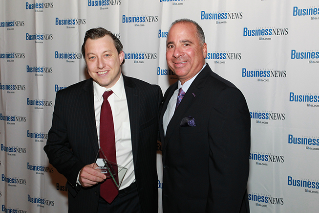 Firm Partner Adam H. Koblenz (left) and Long Island Business News Publisher Scott Schoen (right).